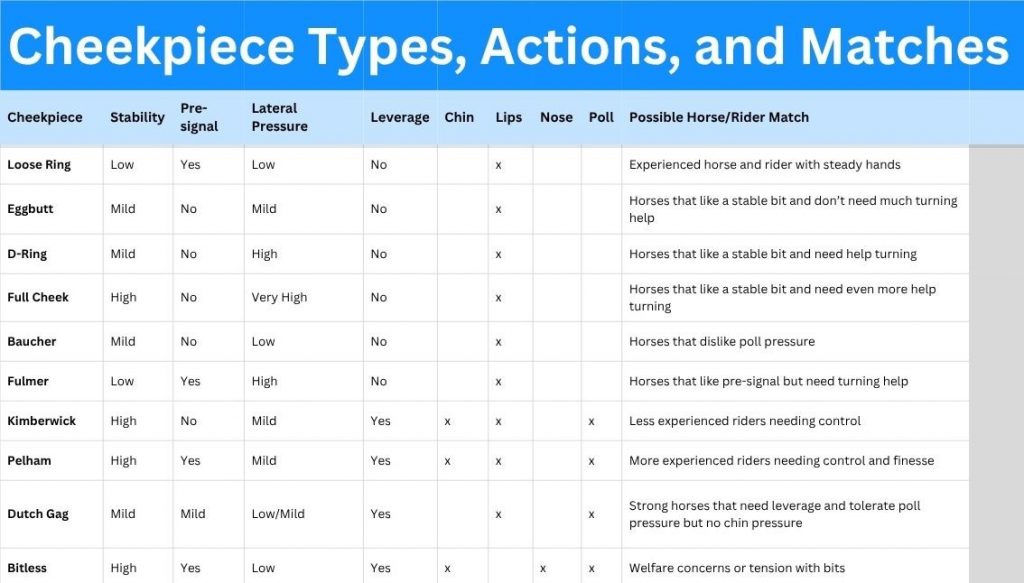 Some horses—especially green, stiff, or bracy ones—benefit from literal, face-on feedback. A bit that pushes on their outside cheek (like a full cheek) makes it easier for them to understand: